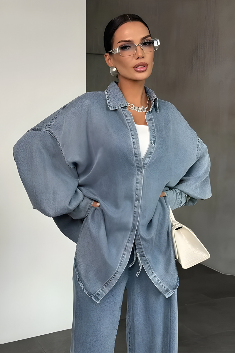 Voel je zelfverzekerd en stijlvol – draag de Noelle™ | Moderne lounge set met wijde broek vandaag nog.